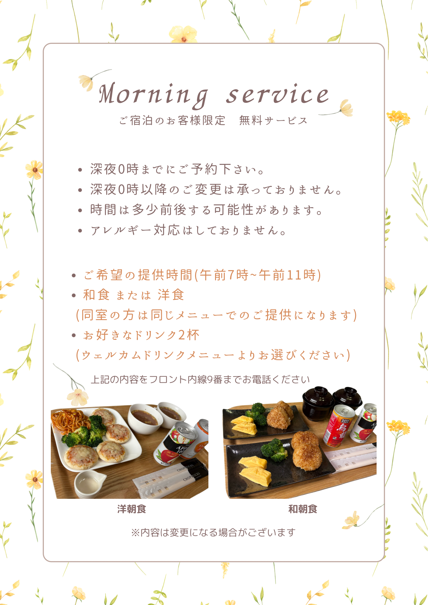 このたび、ご宿泊のお客様限定でご提供している モーニングサービス の内容が新しくなりました。
