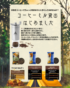 この秋、より「特別な時間」を楽しんでいただけるように、手挽きコーヒーミルの貸出サービスをはじめました!